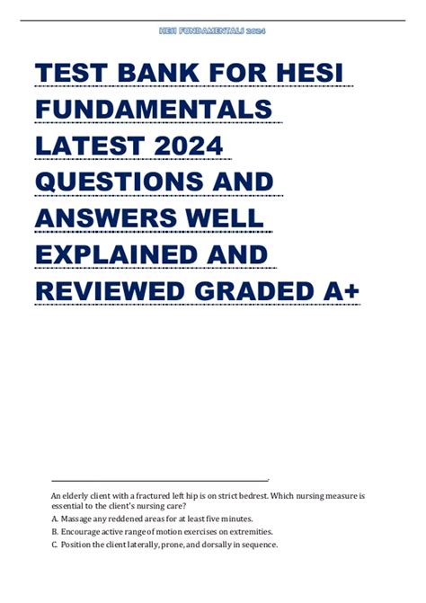 Read Online HESI FUNDAMENTALS TEST BANK Ebook Ebook Kindle Editon By Click Button. HESI FUNDAMENTALS TEST BANK Ebook Ebook it’s easy to recommend a new book category such as Novel, journal, comic, magazin, ect. You see it and you just know that the designer is also an author and understands the challenges involved with having a good book. You can easy klick for detailing book and you can read it online, even you can download it