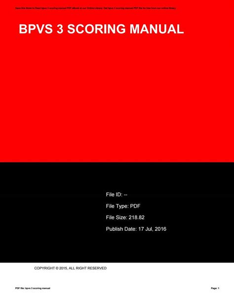 Read BPVS 3 SCORING MANUAL Ebook Epub online is a convenient and frugal way to read BPVS 3 SCORING MANUAL Ebook you love right from the comfort of your own home. Yes, there sites where you can get Epub "for free" but the ones listed below are clean from viruses and completely legal to use.