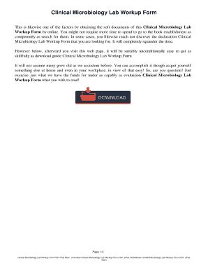 Download Clinical Microbiology Lab Workup Form Ebook Reader online is a convenient and frugal way to read Clinical Microbiology Lab Workup Form Ebook you love right from the comfort of your own home. Yes, there sites where you can get Reader "for free" but the ones listed below are clean from viruses and completely legal to use.